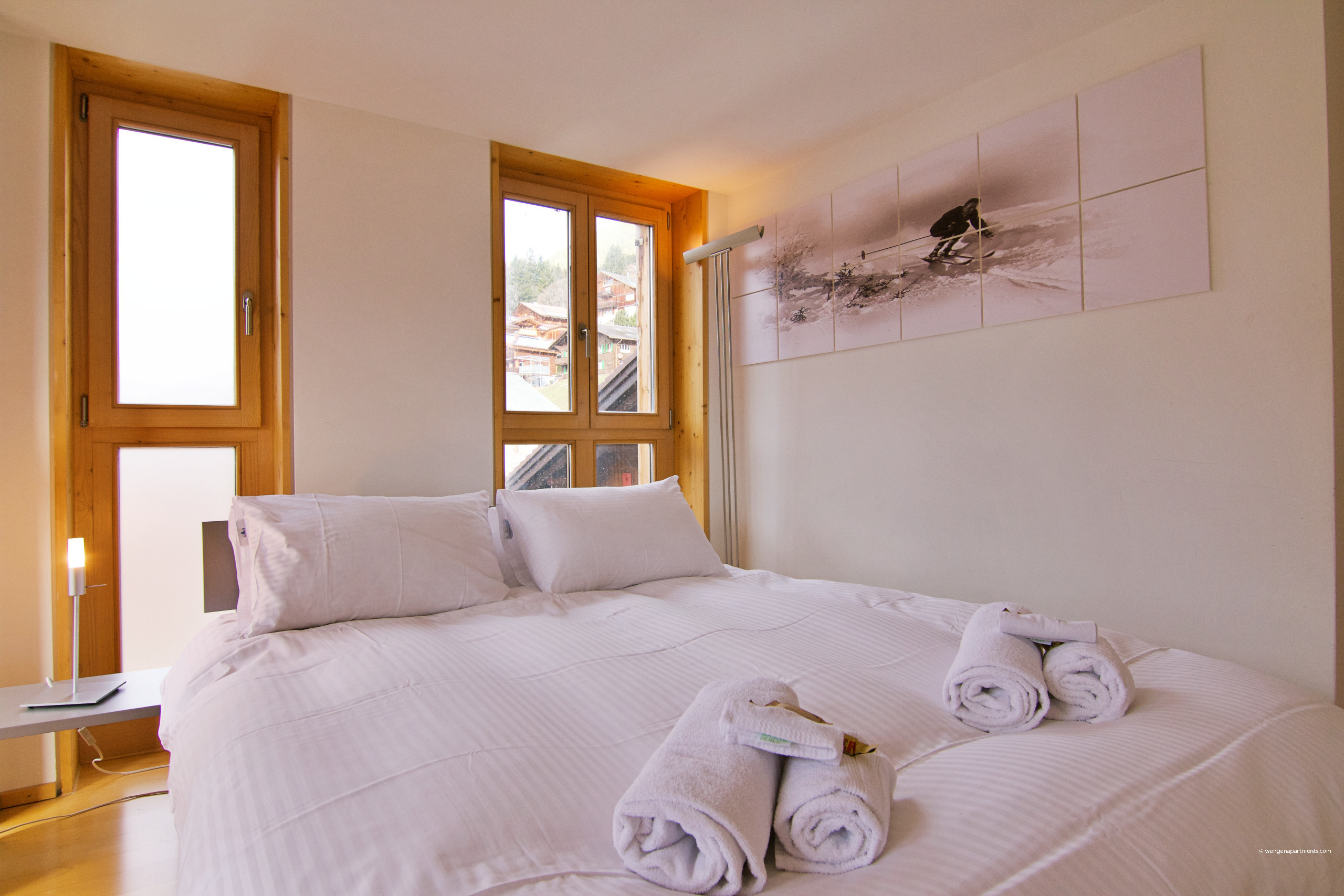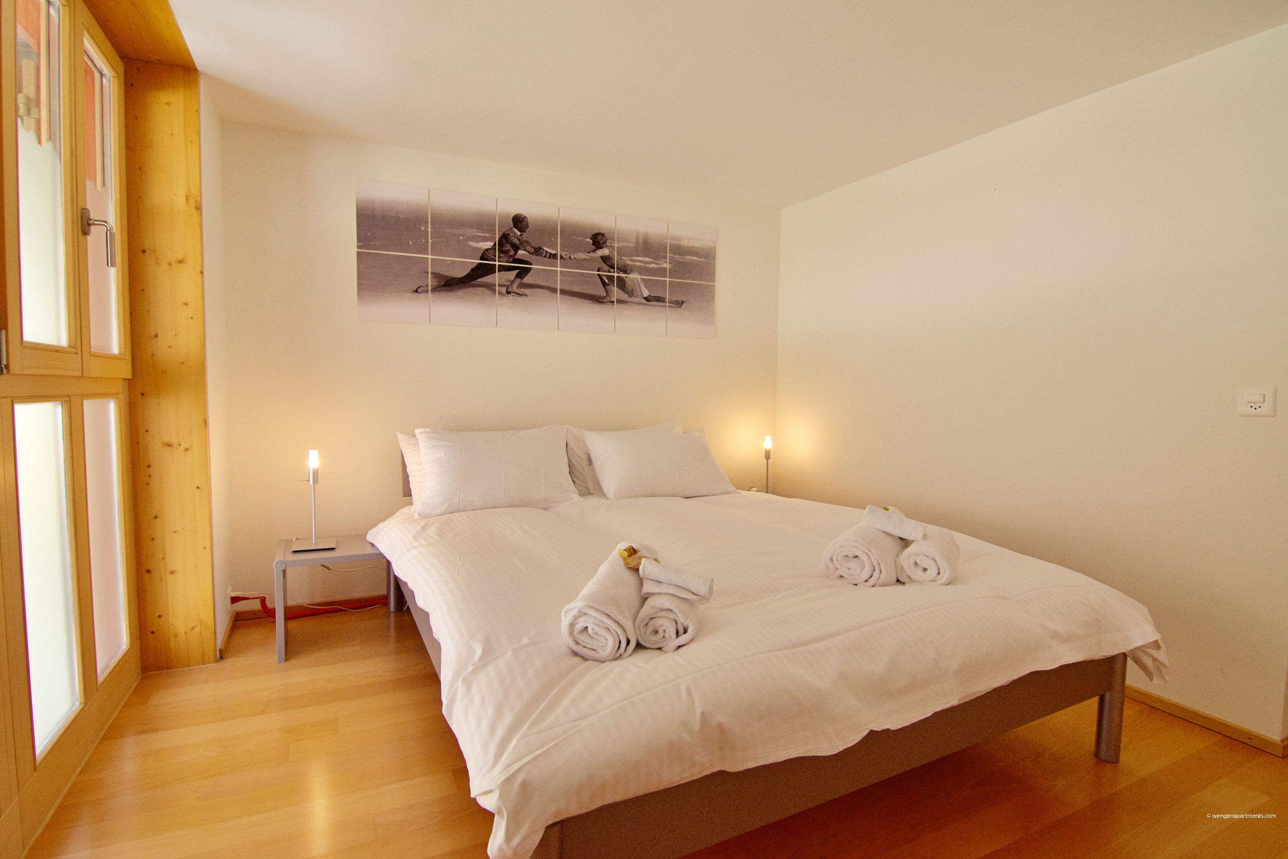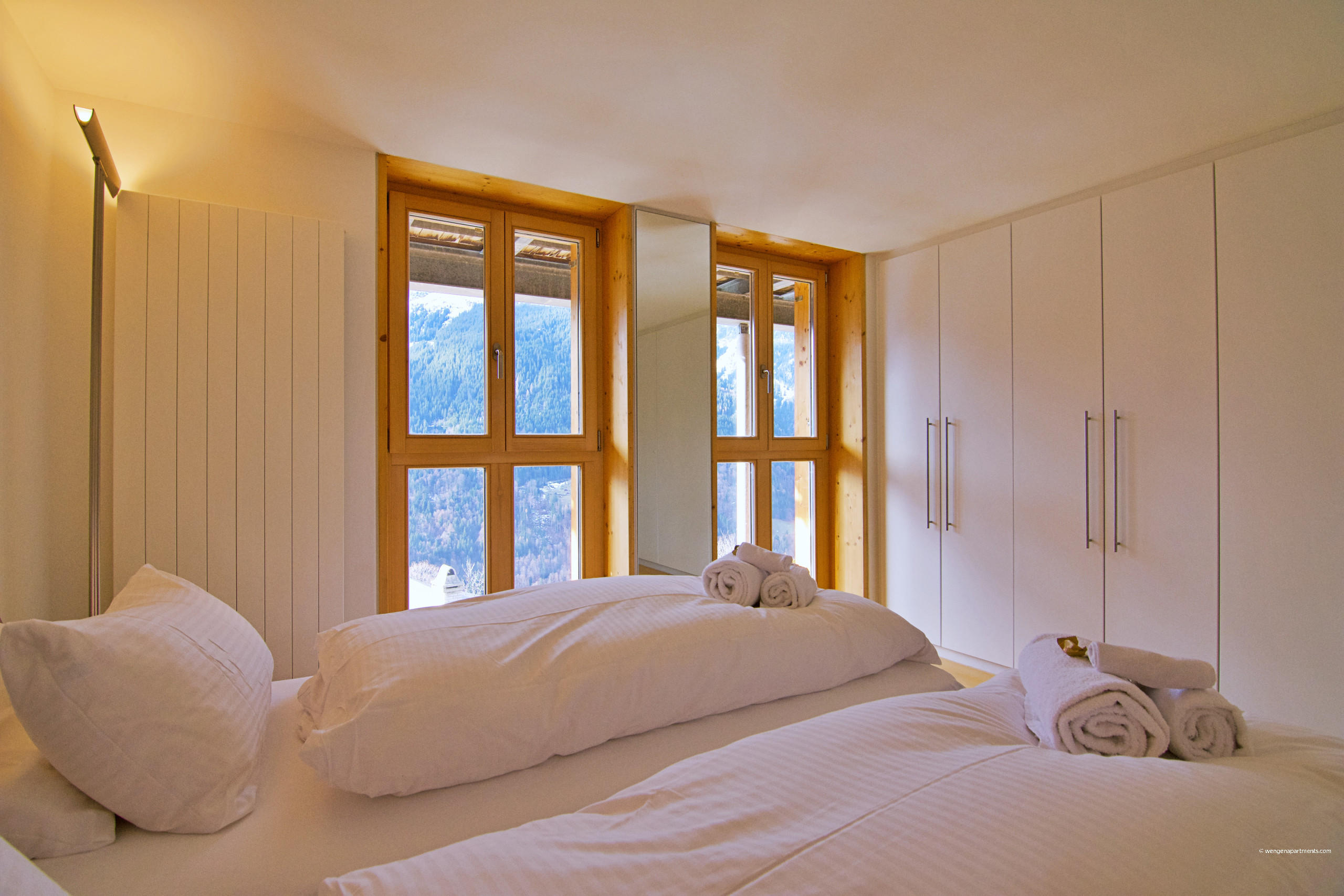 Das Schweizerheim 1 ist eine geräumige und geschmackvoll eingerichtete Zwei-Etagen-Wohnung, die wunderschöne Berge- und Talblicke in dem ruhigen, autofreien Dorf Wengen bietet. Mit 112 m² heller Wohnfläche bietet sie bequem Platz für bis zu sechs Gäste. Die obere Etage verfügt über drei einladende Schlafzimmer - eines mit einem Kingsize-Bett, eines mit einem Queensize-Bett und eines mit zwei Einzelbetten - sowie ein Badezimmer mit einer Badewanne und Duschkombination, plus eine separate Toilette für zusätzlichen Komfort. Der Schlafbereich ist ruhig und komfortabel, was ihn zu einem idealen Rückzugsort nach einem Tag in den Alpen macht.