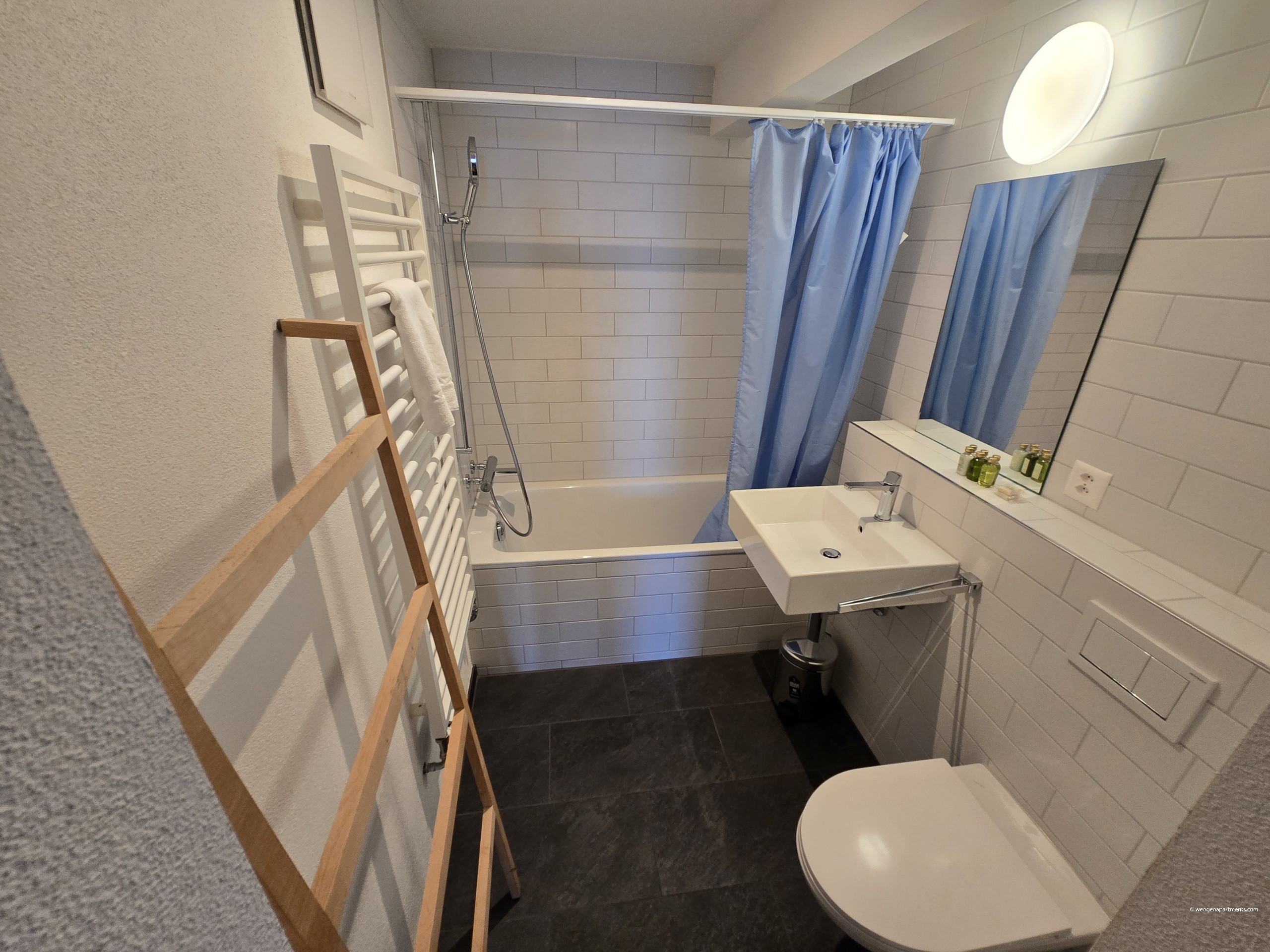 Au cœur de l'appartement se trouve un espace de vie lumineux et ouvert, combinant les zones cuisine, salle à manger et salon. De grandes fenêtres orientées sud et ouest laissent entrer le soleil de l'après-midi et encadrent l'impressionnant paysage montagneux. La cuisine est entièrement équipée pour la cuisine maison, avec des sets à fondue et à raclette pour des soirées chaleureuses. La salle à manger est généreuse et accueillante, tandis que le salon - avec des sièges confortables et une télévision - est parfait pour se détendre après une journée active en plein air.