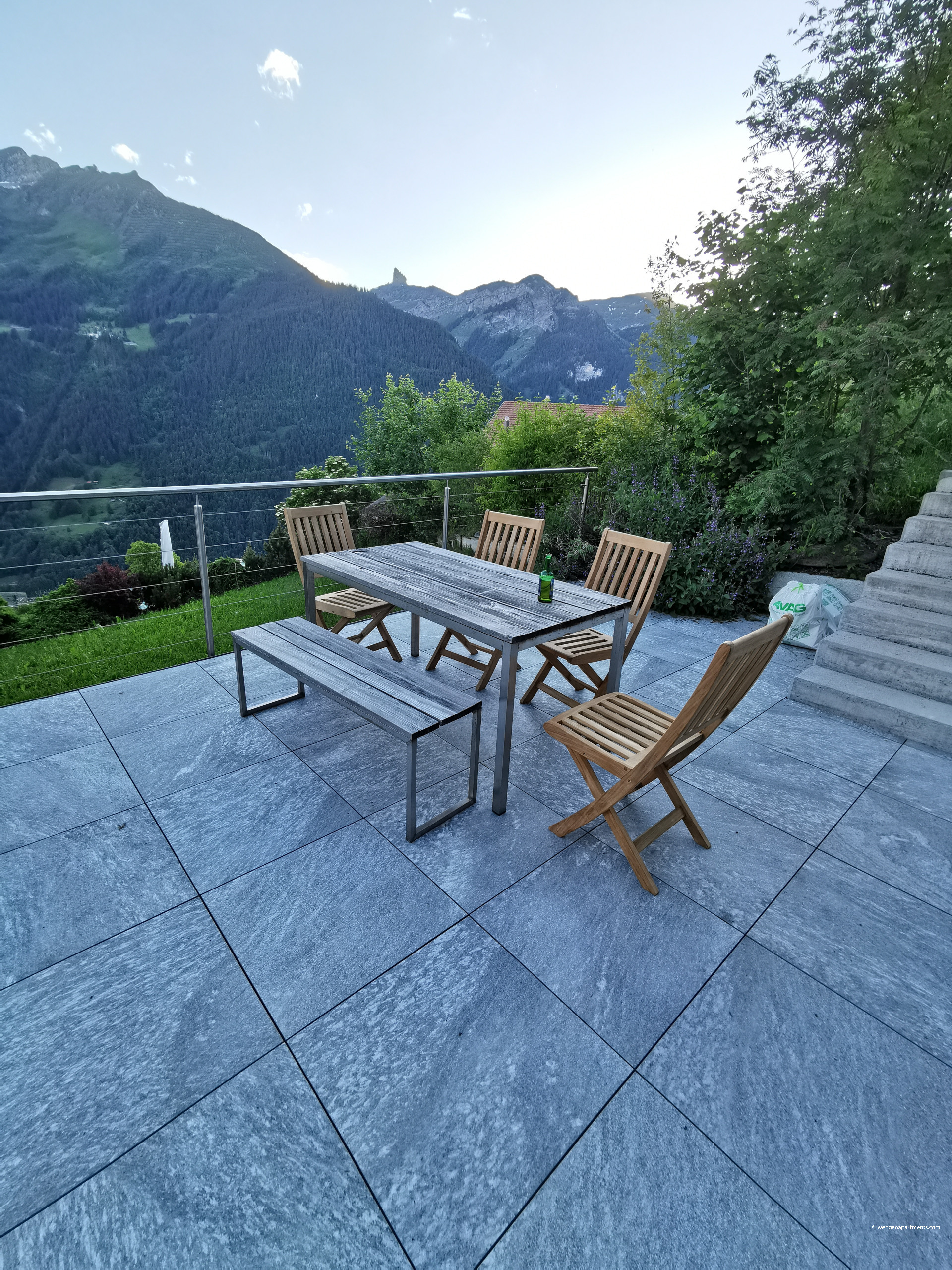 Sortez sur la terrasse spacieuse, où vous pouvez profiter du soleil et admirer les vues panoramiques sur la montagne. Un petit jardin juste en contrebas offre un espace extérieur supplémentaire, et avec des chaises longues, un barbecue au charbon de bois, du mobilier de repas extérieur et un parasol, vous avez tout ce qu'il faut pour profiter de l'air alpin frais.