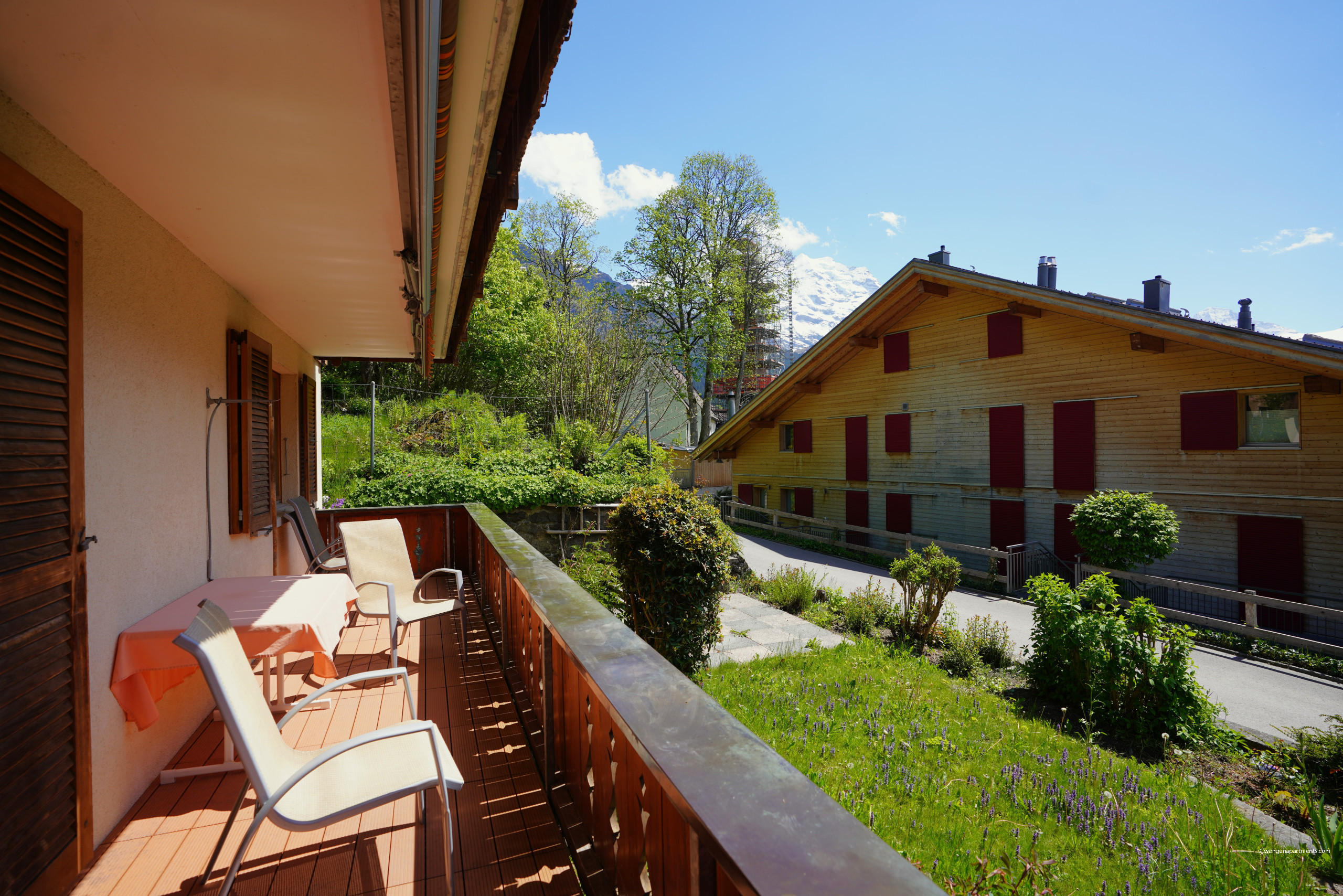 L’appartement bénéficie d’un emplacement central et paisible, à seulement 300 mètres du centre du village et du supermarché, 400 mètres des remontées mécaniques, et 450 mètres de la gare de Wengen. Le quartier est familial et entouré par la beauté naturelle des Alpes suisses.