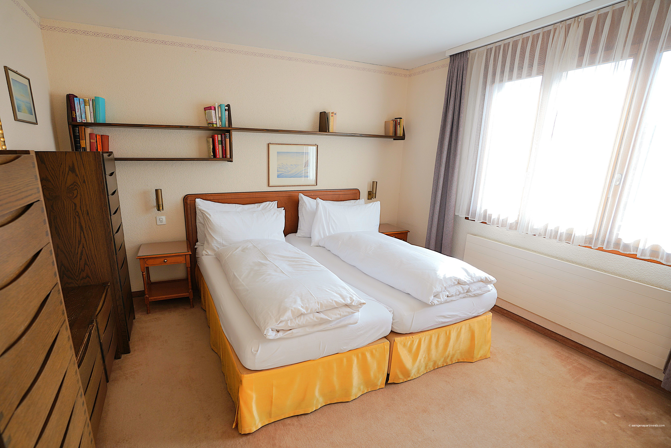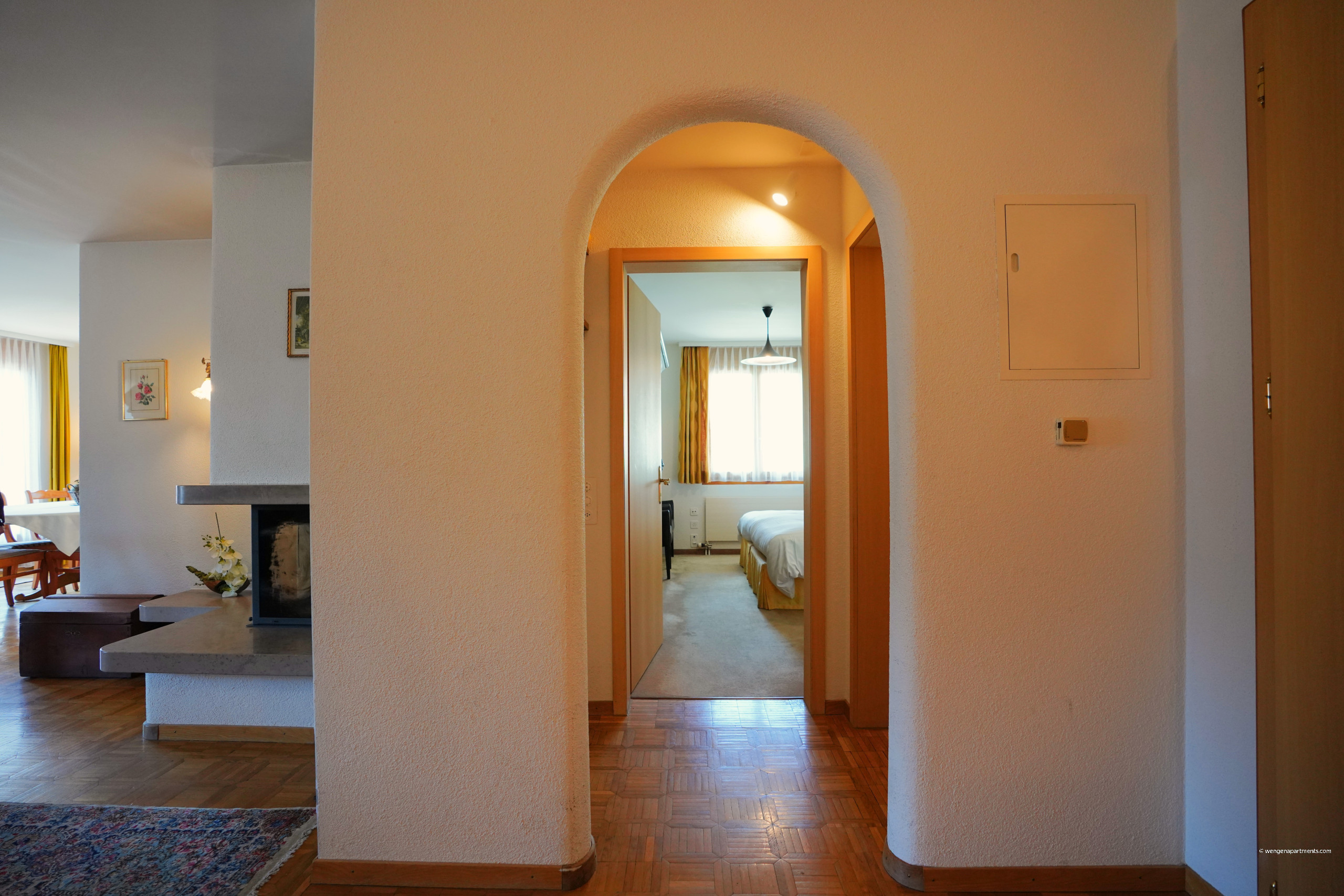 The apartment boasts a central location just 300 metres from the village centre and supermarket, 400 metres from the ski lifts, and 450 metres from Wengen train station. Set in a tranquil, family-friendly neighbourhood surrounded by stunning alpine scenery, everything you need is just a short walk away.