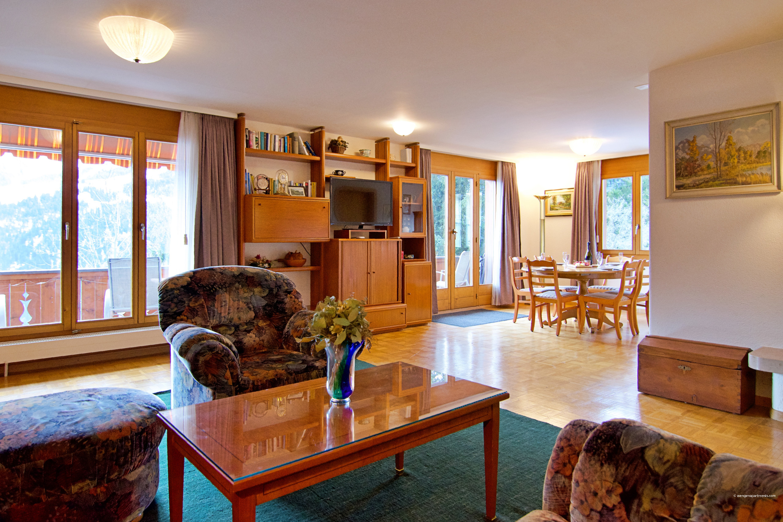Welcome to Miravalle 3, a cozy and spacious 3-bedroom apartment located on the first floor of a charming residence in the heart of Wengen—an idyllic, car-free mountain village. With 115 m² of living space, this inviting home comfortably accommodates up to six guests, making it ideal for families or groups of friends. Step out onto the private first-floor balcony and enjoy breathtaking views of the mountains and garden—a peaceful setting for your morning coffee or evening glass of wine.