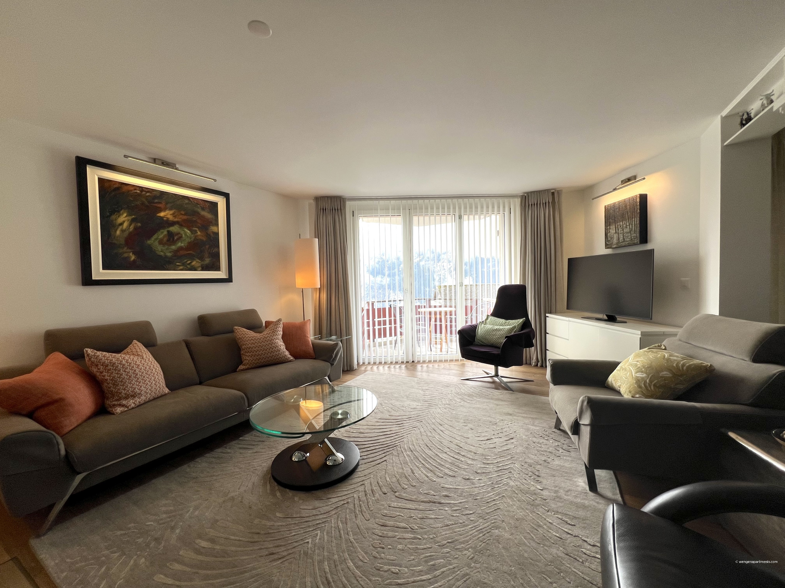 The interiors are beautifully curated with lovely interior design, striking artwork, and designer furniture that create a sophisticated yet comfortable alpine atmosphere. Please note that the indoor fireplace is for decoration only and cannot be used. The living room is perfect for relaxing after a day out, and includes a Smart TV. The apartment is very light and airy, offering wonderful views of the surrounding mountains.