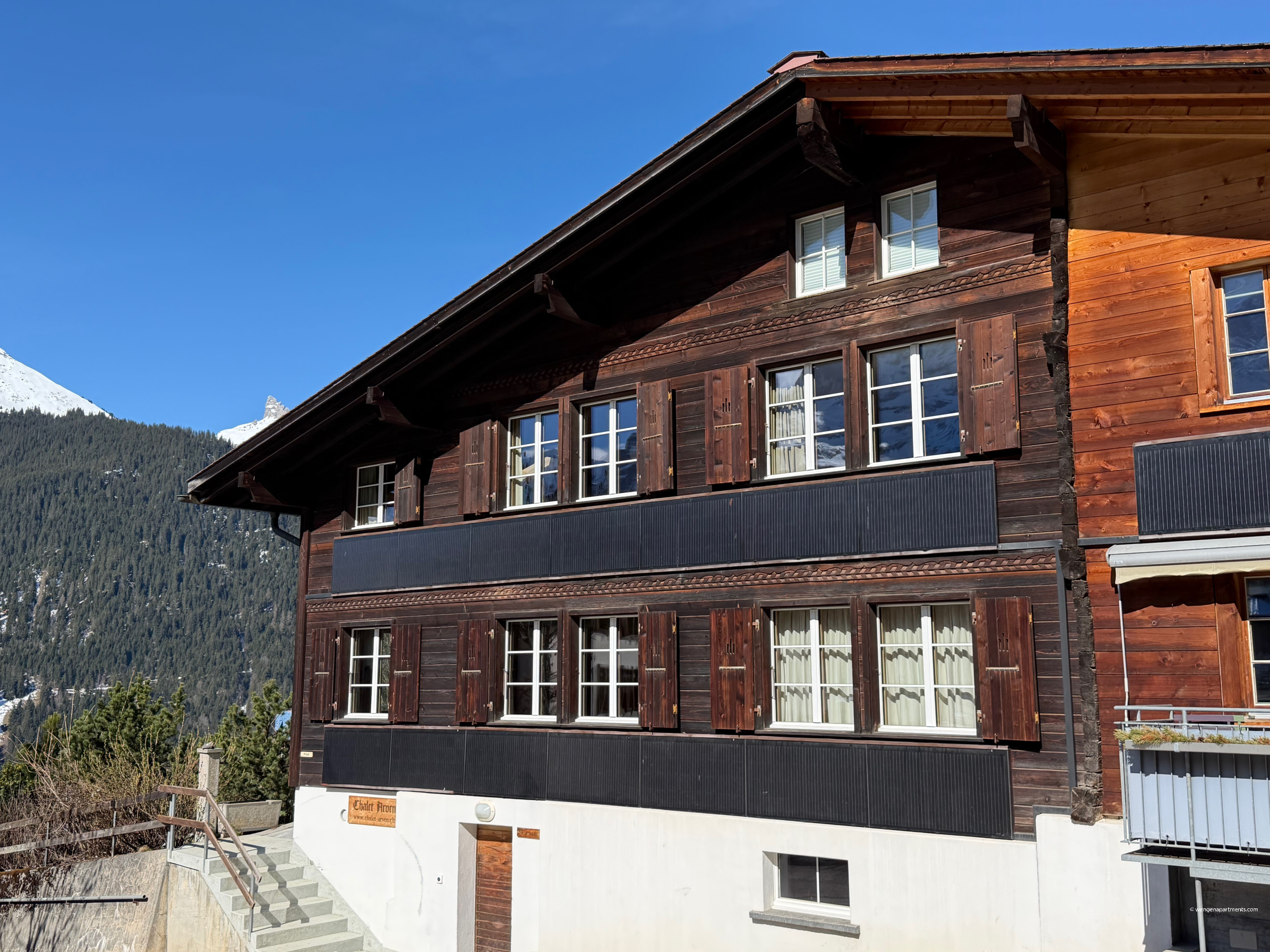 Blending historic alpine charm with modern comfort, Chalet Arven is one of Wengen's earliest chalets, now thoughtfully renovated into a welcoming 3-bedroom apartment. With space for up to 6 guests and panoramic views of the Jungfrau and Silberhorn, it's the perfect mountain retreat for families or small groups.