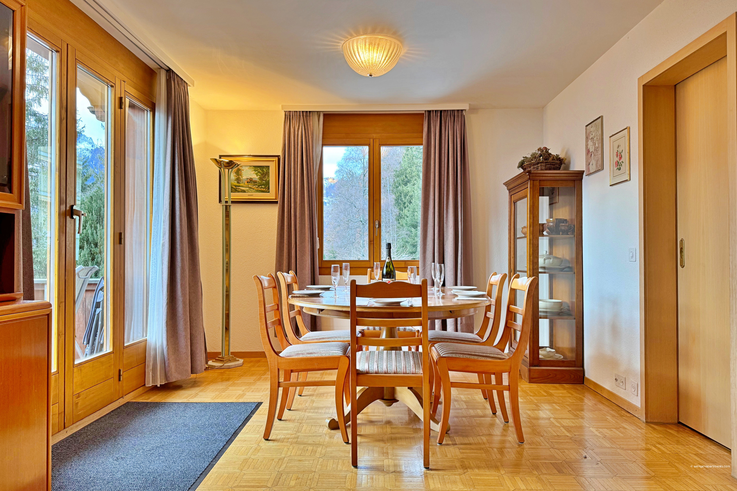 The apartment boasts a central location just 300 metres from the village centre and supermarket, 400 metres from the ski lifts, and 450 metres from Wengen train station. Set in a tranquil, family-friendly neighbourhood surrounded by stunning alpine scenery, everything you need is just a short walk away.