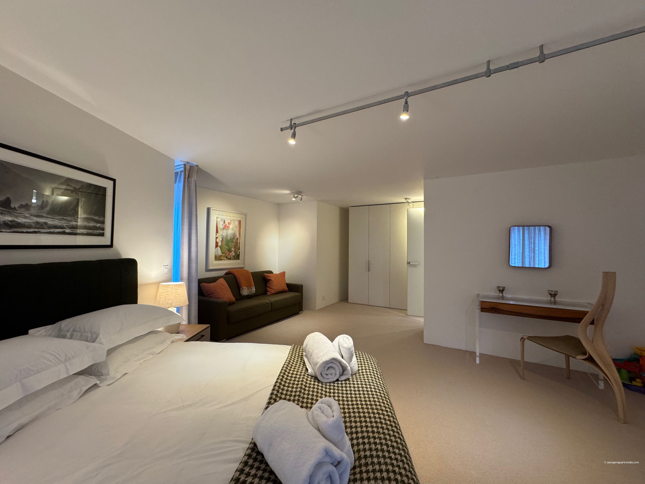 Eiger Residences 2 has 3 double bedrooms, accommodating up to 6 people in style and comfort. All three bedrooms feature comfortable double beds. All beds are European sizes. The property features 3 modern bathrooms for your convenience.